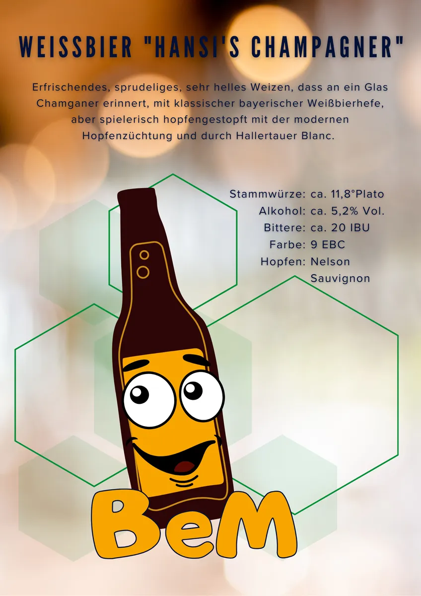 ‘Hansi’s Champagner’ ist unser helles, sprudeliges Weizen, das mit seinem feinen Perlenspiel an ein Glas Champagner erinnert.